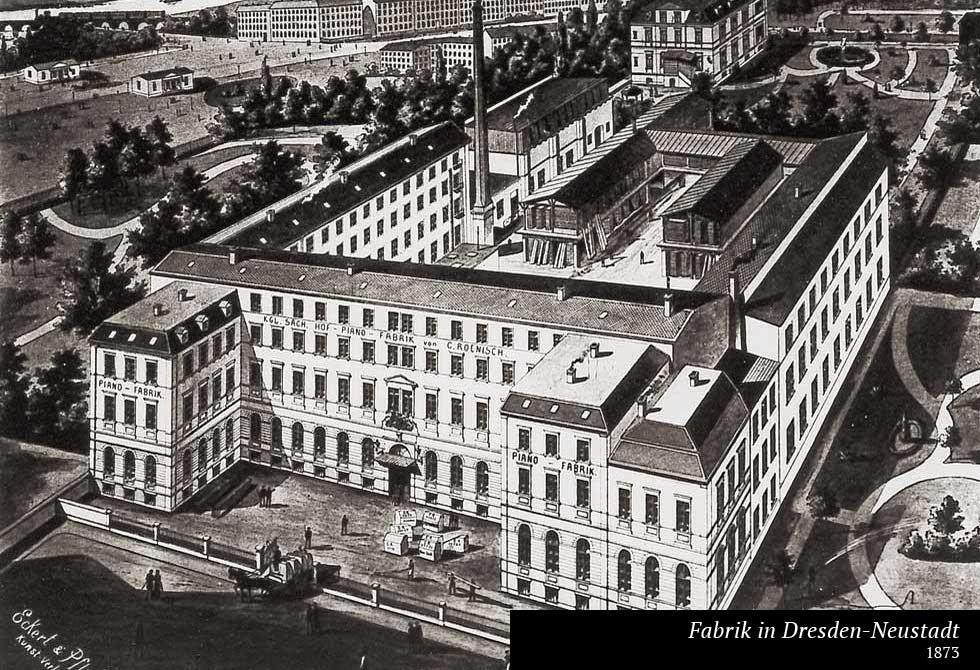 随着隆尼施钢琴不断增长的需求量,1873年,在德累斯顿新城区的全新的工厂正式投入生产。