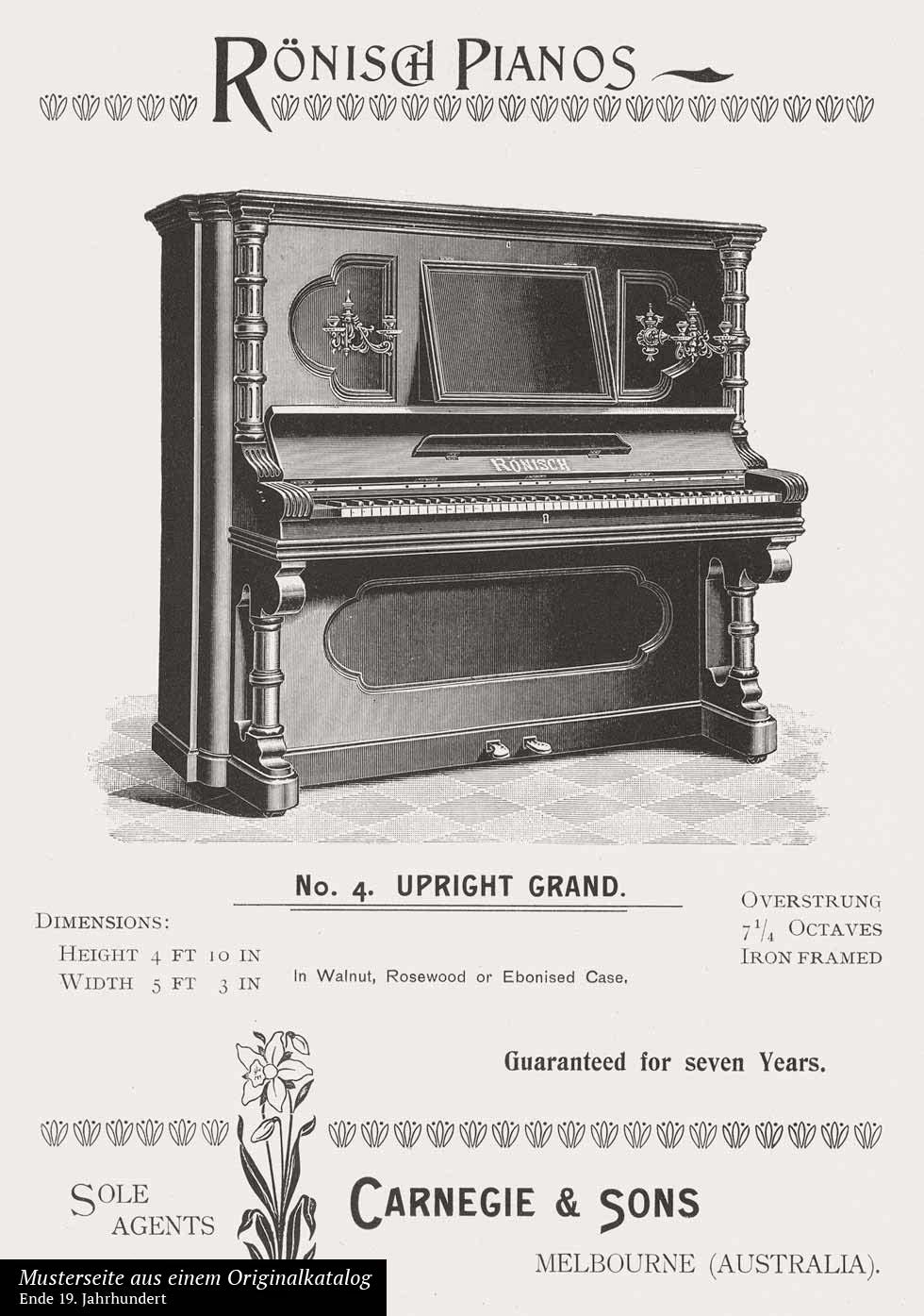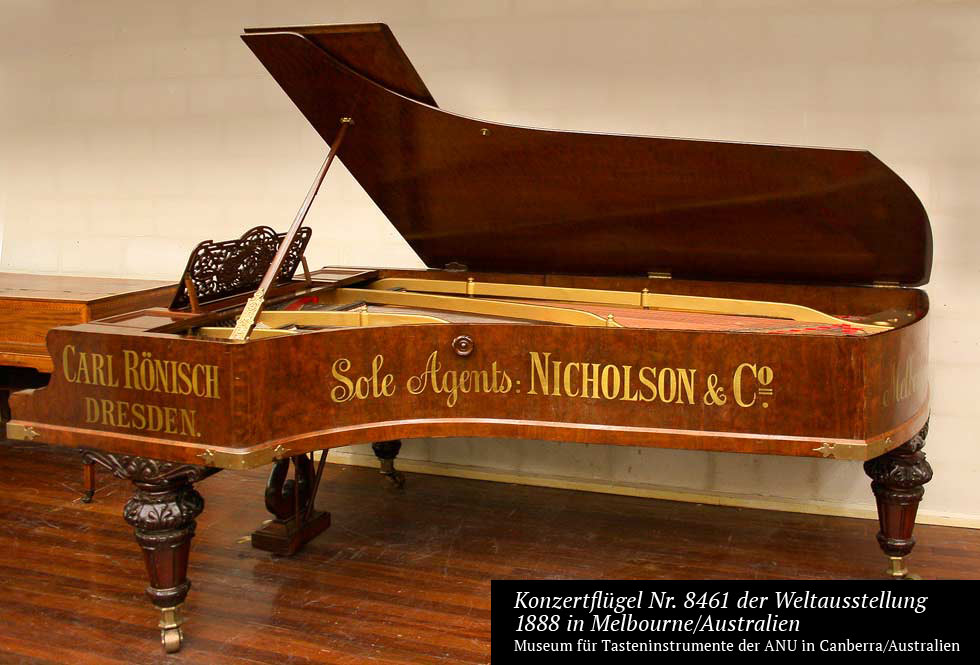 品质非凡的隆尼施三角琴在1888墨尔本世界展览会上荣获第一。这台型号为8461的演奏会三角琴被堪培拉的澳大利亚国立大学音乐学院键盘系当做澳大利亚音乐史上极其重要的一部分珍藏。