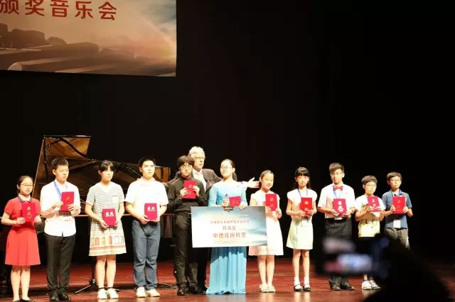 就在颁奖音乐会井然有序的进行之时,舞台上发生的一个“意外”小插曲,却令所有在场观众为之动容。按照既定的流程,德国音乐理事会的中国首席代表杨林教授(德籍)上台代表德国音乐理事会致辞之后,就将轮到评委会主席的发言。而当杨教授的致辞结束后,他却并没有按“计划”归位,而是从边上捧起一束自己事先准备的鲜花,回到台前继续讲到:这次回国参与这项比赛,最大的意外与惊喜之一,就是在评委会里,遇到了30年前,我的钢琴启蒙老师,谢耿教授。说罢便将谢教授请上了舞台,献上了自己提前准备好的鲜花,向老师至以最真切致敬;师生俩在舞台上再续师生缘。谢耿教授表示,这实在是一个很大的意外,30年前的学生早年就定居海外,如今作为德国音理会的中方代表归来,也令自己为自己的学生,如今能站在世界的舞台上,为祖国、乃至世界音乐教育界的发展,感到非常开心与自豪。
