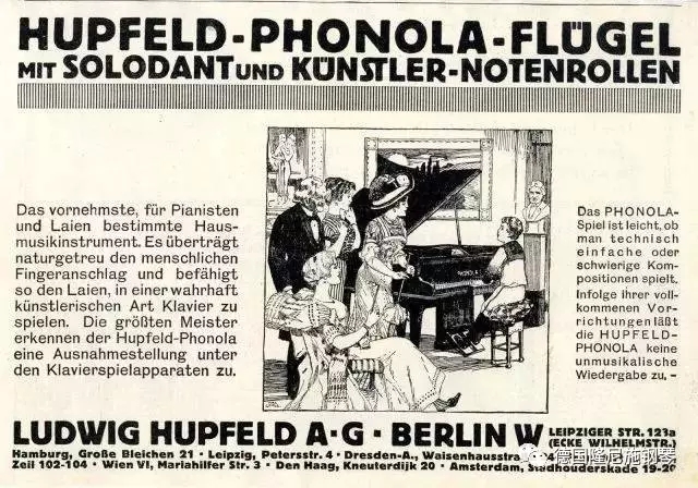 由隆尼施提供三角钢琴与立式钢琴给霍普菲尔德,