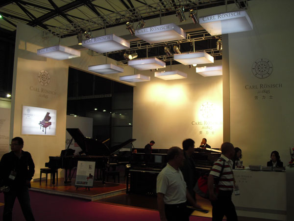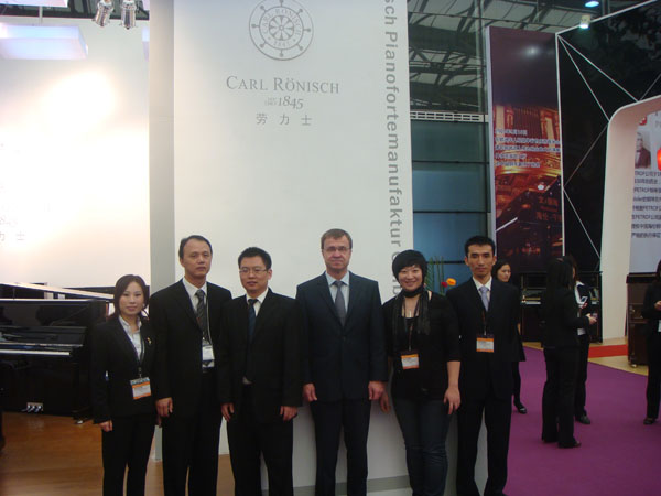 2010年上海世博会成功举办,吸引了全世界的人来到这座美丽的东方城市参观,领略上海这座城市的独特魅力。同样2010年上海国际乐器展在10月12-15号展览中也吸引了全球音乐爱好者和乐器经营者的参观,本次展会前来洽谈的人比往年更多,无论是经营者还是生产厂家都得到了成果,德国CARL RÖNISCH钢琴有限公司(CARL RÖNISCH Pianfortemanufatur GmbH)公司在本次展览会更是取得了骄人的成绩。德国CARL RÖNISCH钢琴有限公司展示了旗下品牌:原装CARL RÖNISCH钢琴和在中国组装的HUPFLED(霍普菲德)钢琴。德国CARL RÖNISCH钢琴是迄今为数不多的在德国继续生产的钢琴厂之一,在中国以CARL RÖNISCH品牌进行销售。此次,德国CARL RÖNISCH钢琴总裁Frank Kattein先生也亲临上海,指导CARL RÖNISCH在中国的市场开拓,CARL RÖNISCH钢琴现已在中国展开全面招商工作,这次展会上已有100多家琴行申请做CARL RÖNISCH钢琴专卖店,展会结束后将对中国销售市场进行考察及布局。